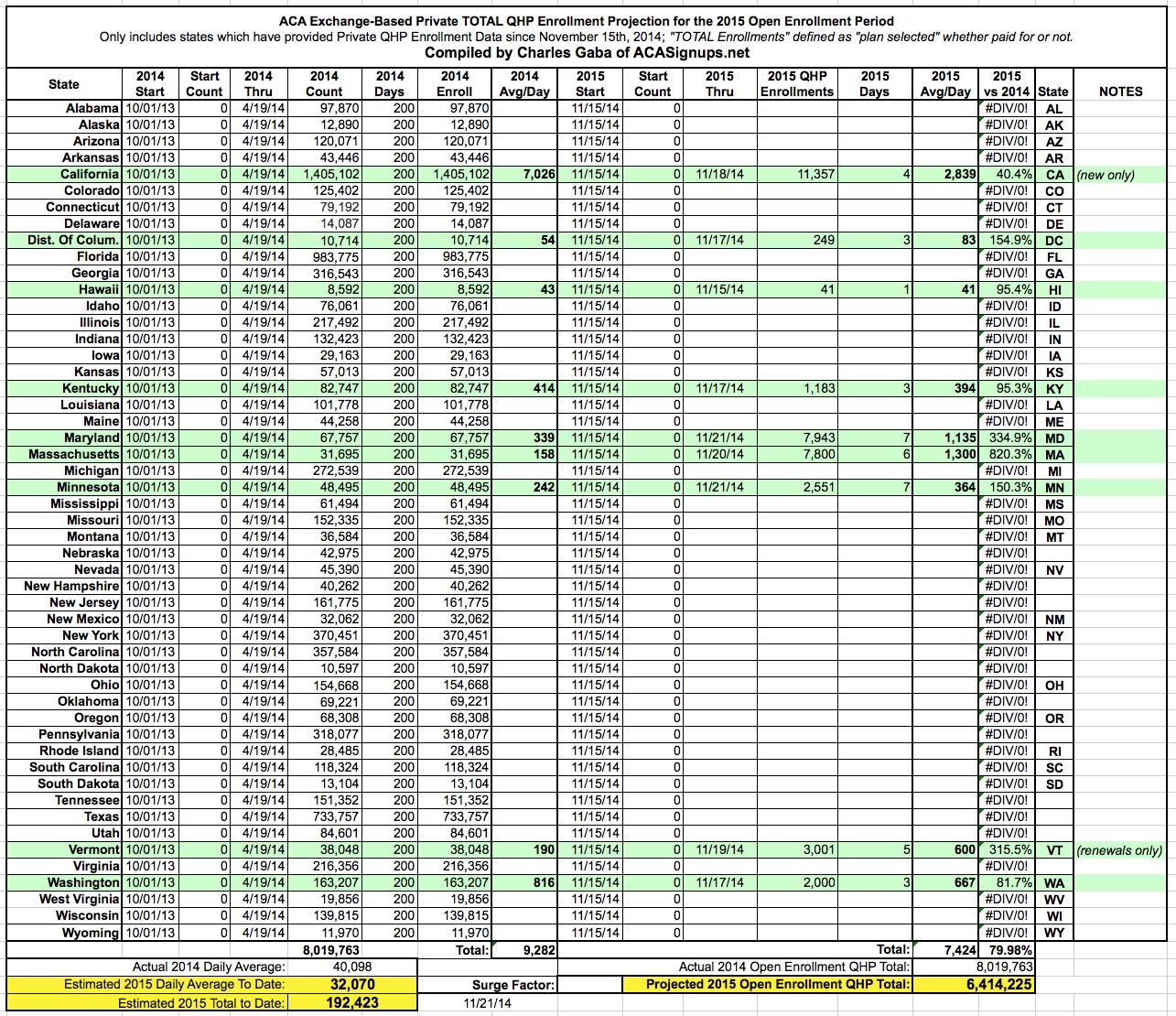 My first 2015 NATIONAL QHP estimate: 193K in 1st week (Updated: 212K)