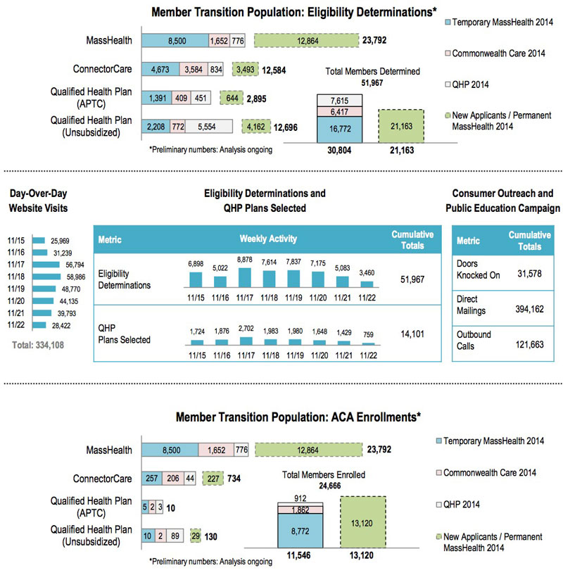 Well, it turns out I had it right in the first place: Massachusetts is about to announce 14,101 QHPs actually selected as of Saturday, out of 28,175 determinations (essentially 50% on the nose)!