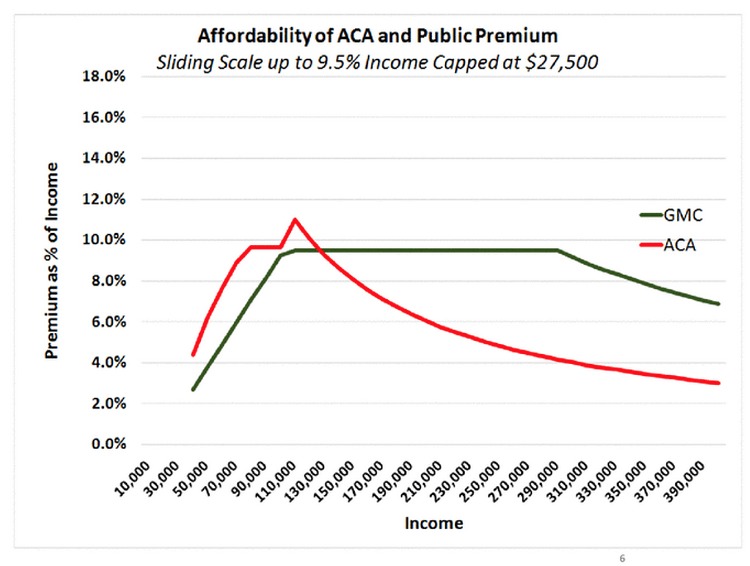 There is one interesting thing which I noticed in the PowerPoint presentation which explained the cost & funding problems of the Green Mountain Care initiative, however; check out page 6 of the presentation, which compares the affordability of Green Mountain Care against the Affordable Care Act across the income spectrum: