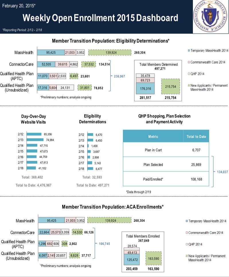 Massachusetts: 134K confirmed QHPs, 81% paid; 260K Medicaid