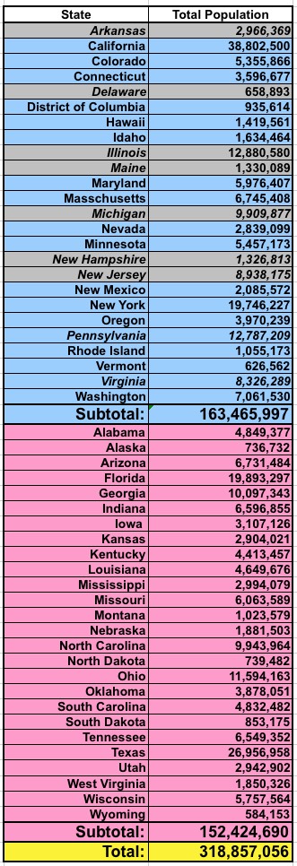 - Delaware (Dem Governor, Dem legislature...the only reason they didn't do so already was because of the expense for a small state...but if the OR/NV/NM model is kosher, I'd expect them to jump all over it)