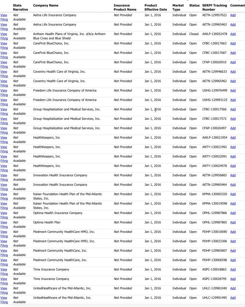 Think that's bad? If and when I ever slog through that behemoth to hunt down the average rate increase for Aetna PPO policies, I still have 30 more to go...for Virginia alone:
