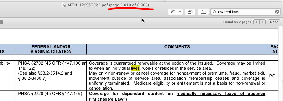Yes, that's right. The 103 MB rate filing form for Aetna's individual market PPO policies in Virginia is over 6,000 pages long.