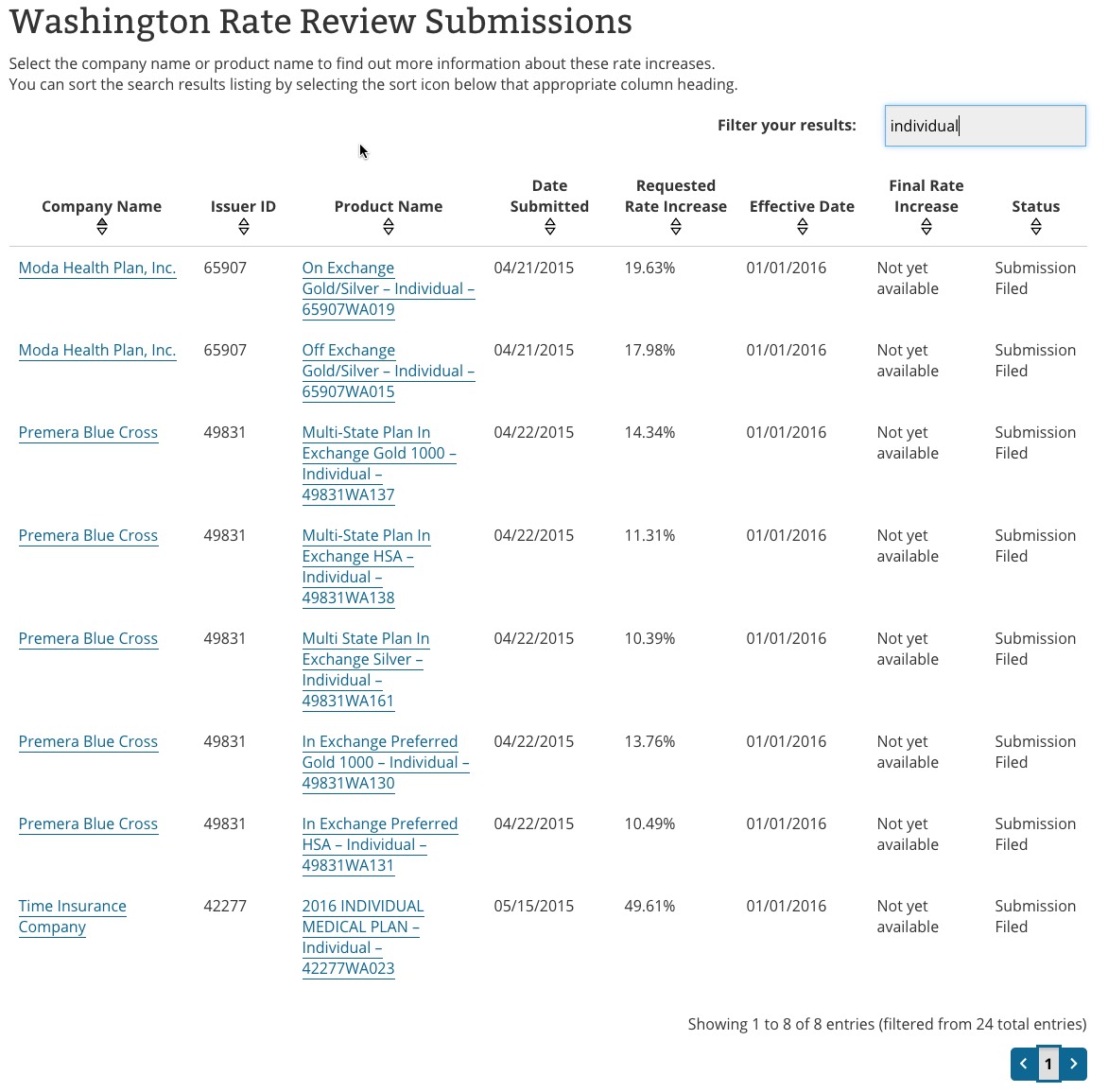 However, here's what it looks like at https://ratereview.healthcare.gov when you run a search for 2016 Individual Market products in Washington State: