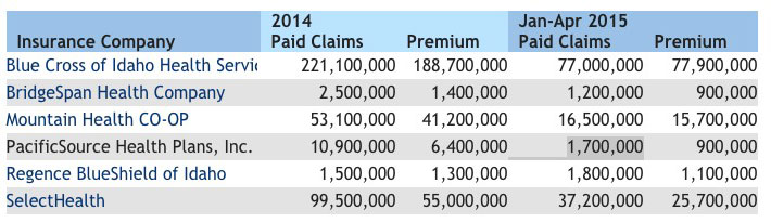 The good news is that while the enrollment figure for PacificSource isn't listed, the ID Insurance website does list the paid claims and premiums for all 6 companies for both 2014 and the first half of 2015.