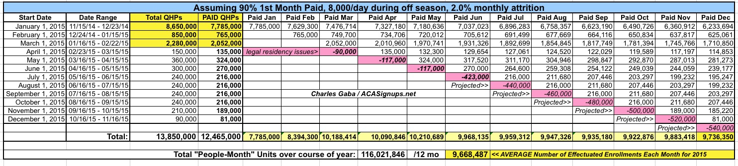 As for my full-year effectuated enrollment projection, here's what it looks like with the following corrections (click the image for a higher-resolution version):