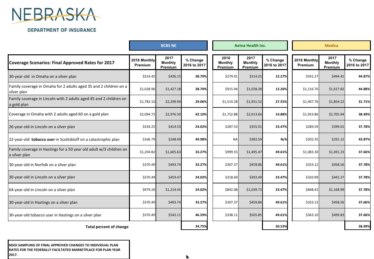 Nebraska: *Approved* 2017 avg. rate hikes: 35% (oh, and Aetna is JOINING the exchange??)