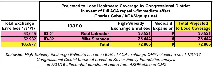 - UPDATE 2/19/17: HAWAII AND IDAHO now added. (After weeks of having to track down the individual congressional districts by rolling over the appropriate part of the map--which wasn't easy in many districts due to gerrymandering--it looks like the KFF has added the actual raw source data, making it much easier to finish up the remaining states!)