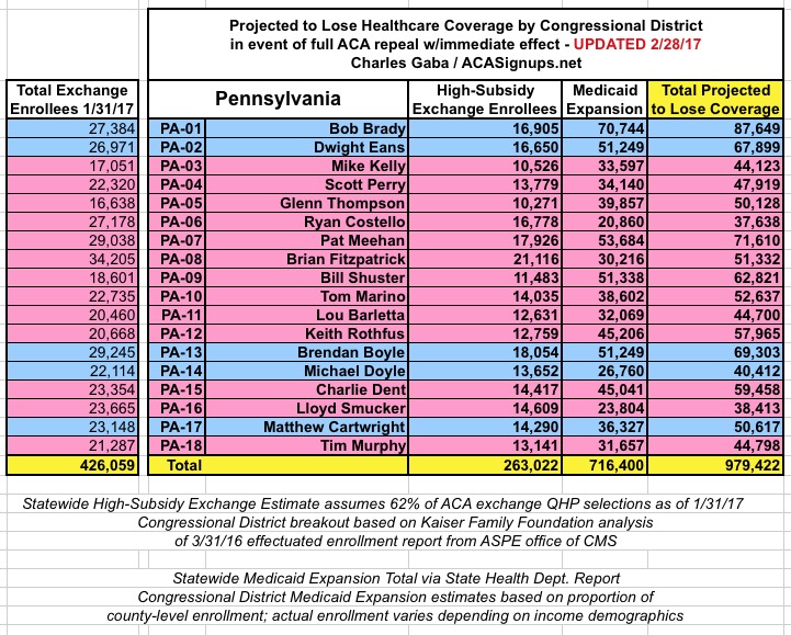 Unfortunately, due to the sheer amount of time it would take to do so, and the fact that the House is voting on the AHCA tomorrow (Thursday, 3/23), I don't have time to completely update/overhaul the Google Docs version of this data.