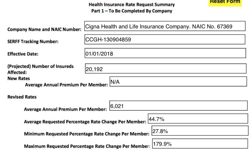 In any event, assuming all of the numbers below are accurate and that I'm not missing any major data points, it looks to me as though Virginia insurance carriers are initially requesting an unsubsidized, full-price, weighted average rate hike of roughly 30.6% on the individual market.