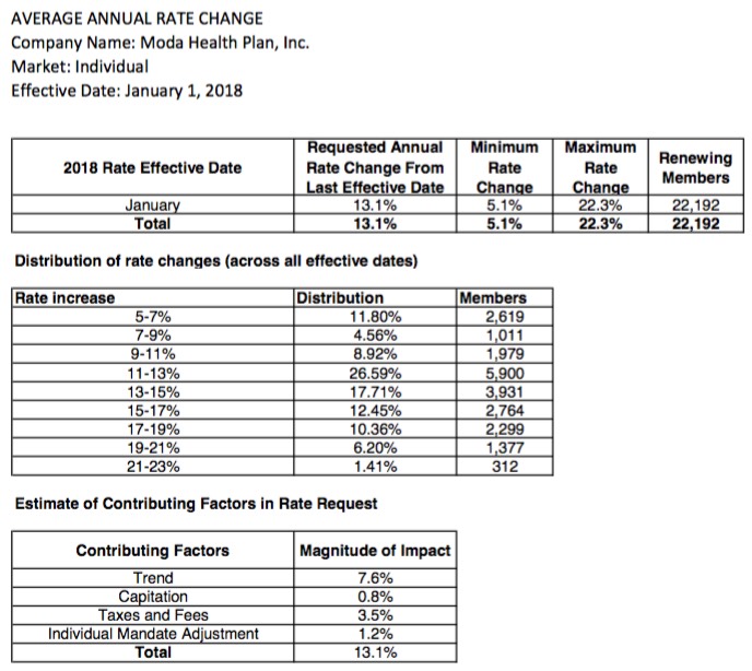 Overall, it looks like the unsubsidized weighted average increase being requested by Oregon carriers for the individual market is around 17.2%, while the small group market comes in at 8.2%.