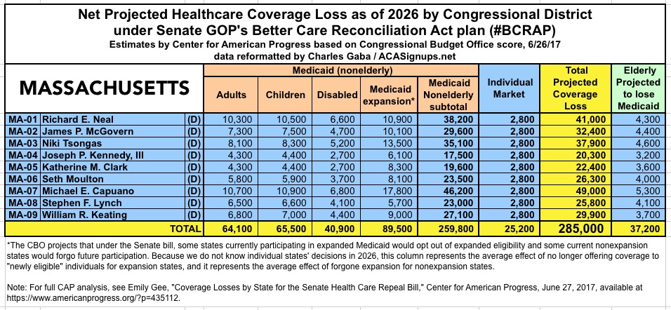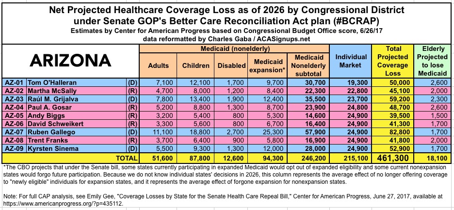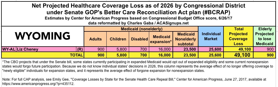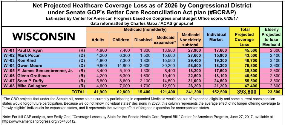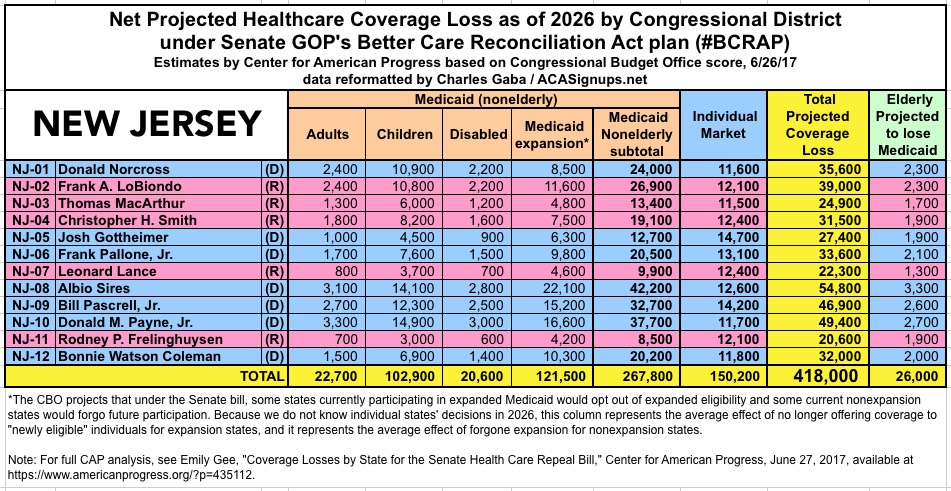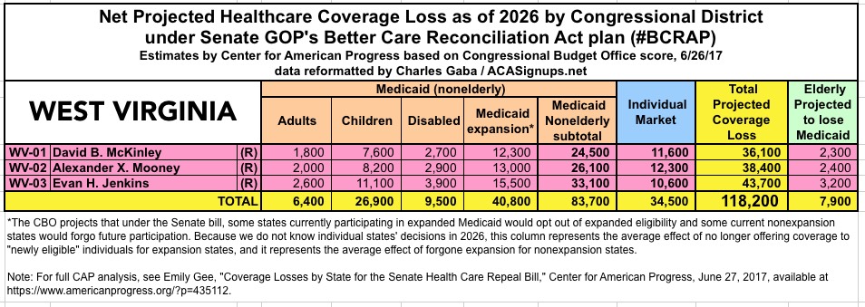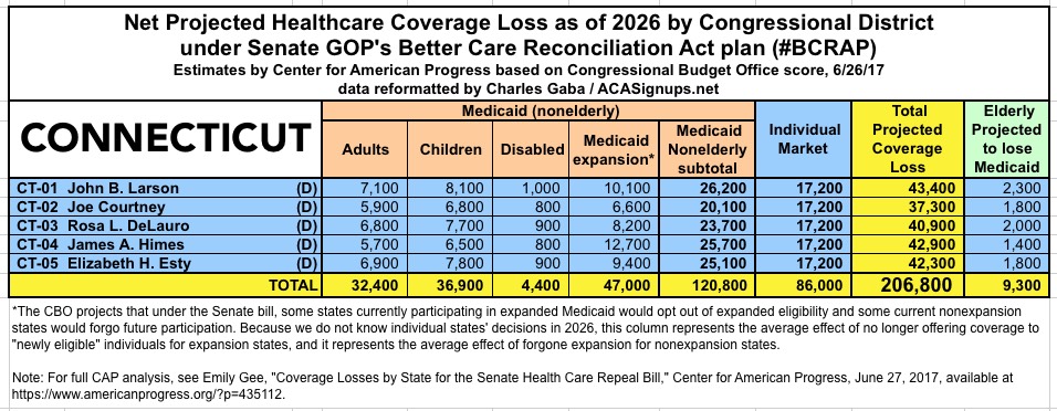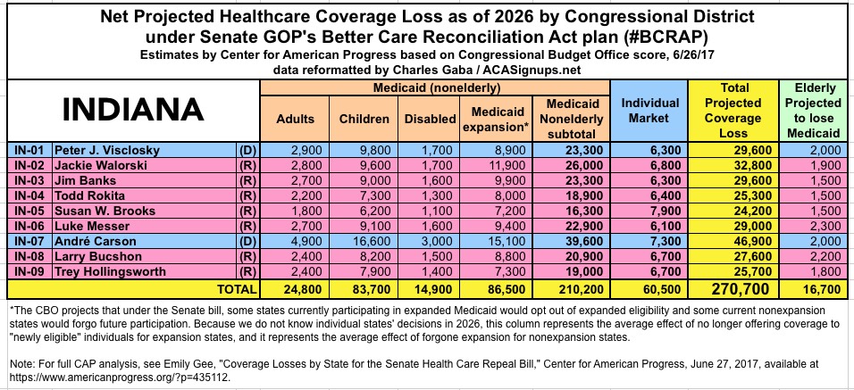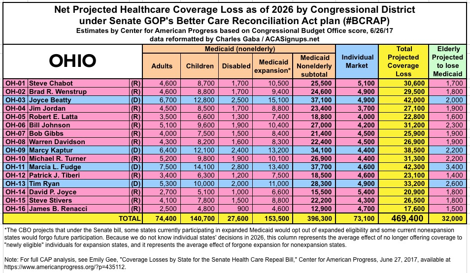 The Center for American Progress has put together their own state-based and Congressional-District-based breakout of the latest score by the CBO of the Republican Senate's "BCRAP" healthcare bill.