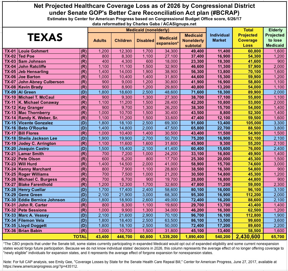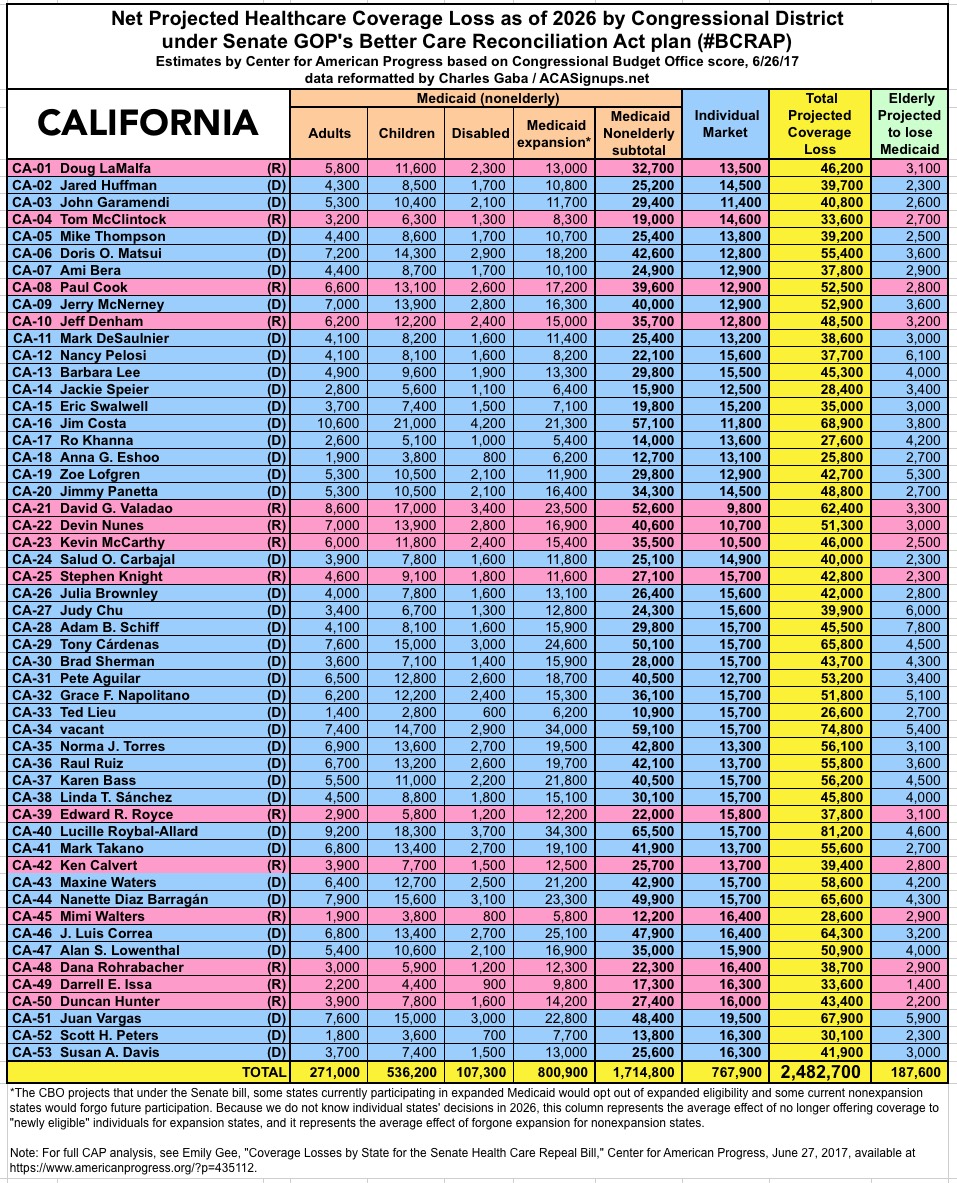 ALL-NEW: How many would lose coverage under Trumpcare in YOUR State/District (BCRAP Edition)??