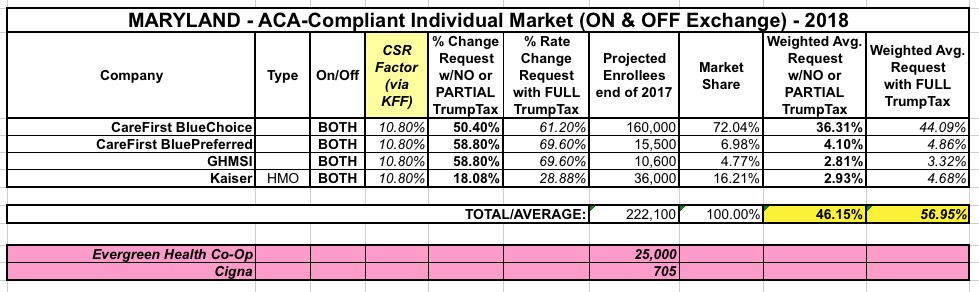 In any event, with both of these changes, here's the updated/revised Maryland analysis: 46.1% with CSR payments, 57.0% (ouch) without: