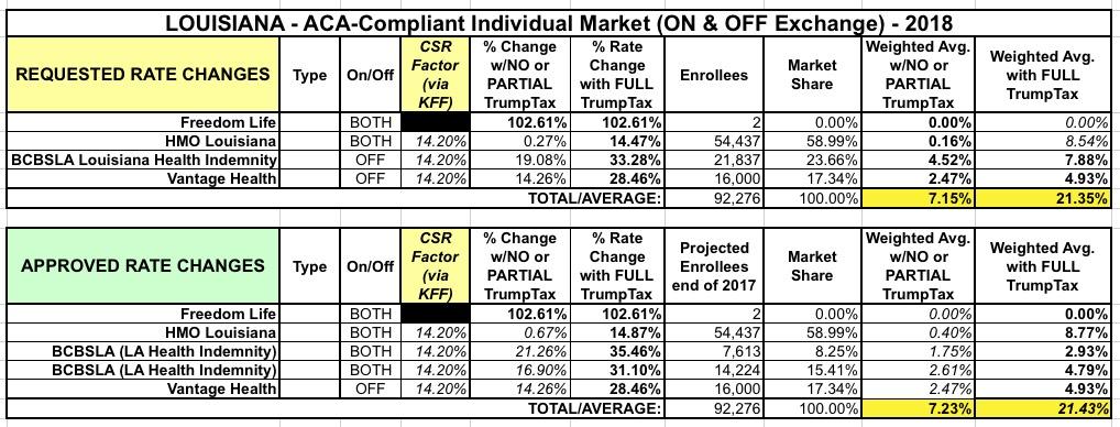 Louisiana: APPROVED rate hikes: 7.2% if CSRs *are* paid, 21.4% if they *aren't*