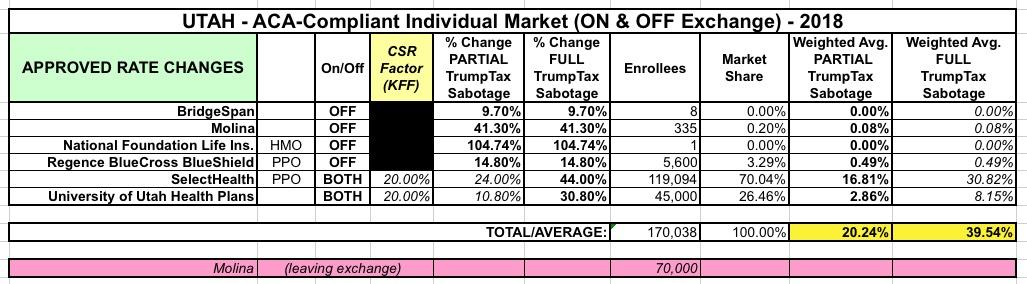 Update: Utah approved rate hikes: ~20% w/CSRs paid, 40% without