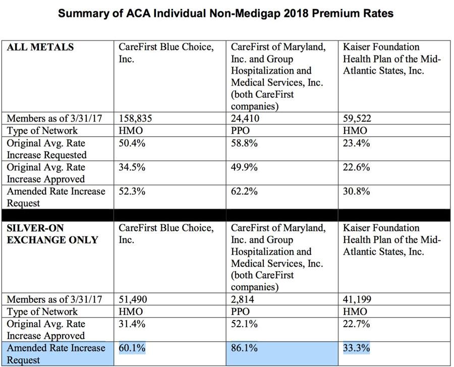 ​BALTIMORE — Maryland Insurance Commissioner Al Redmer, Jr. will hold a public hearing on health insurance companies’ proposed amended premium rates for 2018 health insurance plans in the individual non-medigap market. This quasi-legislative hearing, scheduled from 9 am – 11 am on Monday, October 23, 2017 at the Maryland Insurance Administration’s office will focus on plans sold to individuals. Plans can be bought direct from the carrier, through a producer or via the Maryland Health Connection. Two carriers offer plans in this market: CareFirst and Kaiser. The rates for the small group market have not been amended.