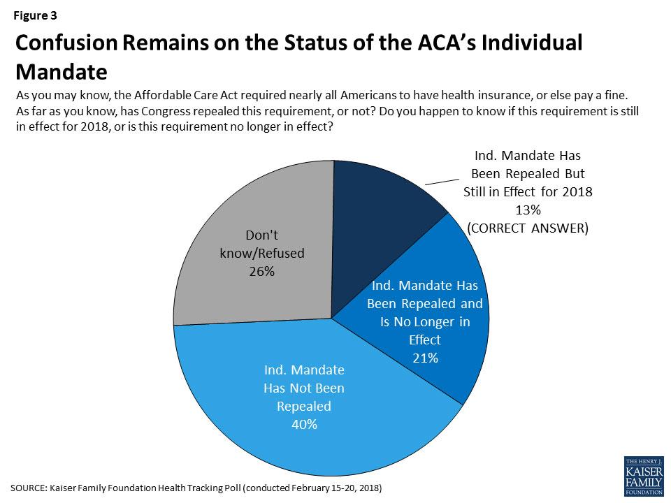 Yup, only 13% of the public understands that a) the ACA's Individual Mandate has been repealed, but b) the repeal itself doesn't actually go into effect until they pay their taxes for 2019 in the spring of 2020.