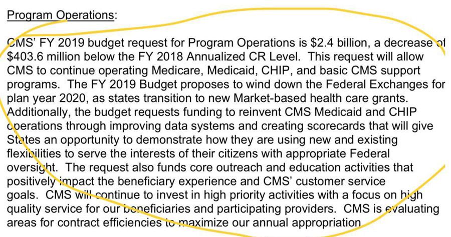 Slavitt is referring to CMS's Fiscal Year 2019 Justification of Estimates for Appropriations Committees (page 3). Here's the paragraph in text format: