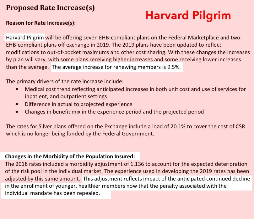 In fact, CHO includes a bonus note: They also confirm that their concerns over the Trump Administration weakly enforcing the mandate this year were a major contributing factor to their 2018 rate increases. I was shouting about this from the rooftops all last summer/fall, and several carriers called it out last year as well, but this is the first time I've seen one of them confirme it after the fact.