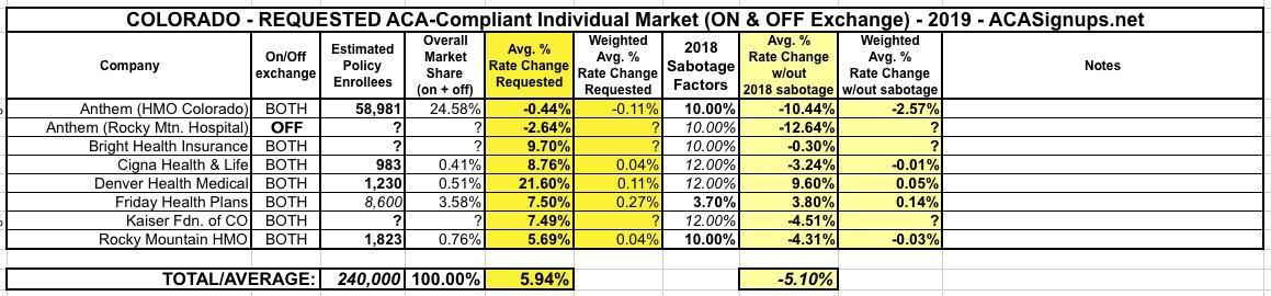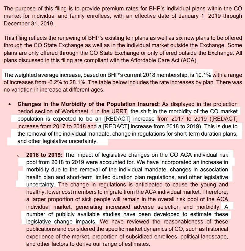 Colorado: Preliminary 2019 #ACA rate hike request: 6.0% INCREASE instead of a ~5.1% DECREASE w/out sabotage