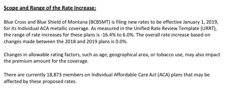 I posted Montana's preliminary/requested 2019 ACA indiividual market rate change requests back in late June. At the time, they were seeking average rate increases of 6.0% statewide, and I estimated that the GOP's repeal of the ACA's individual mandate penalty, combined with the Trump Administration's expansion of #ShortAssPlans, accounted for about 9.9 percentage points of that.