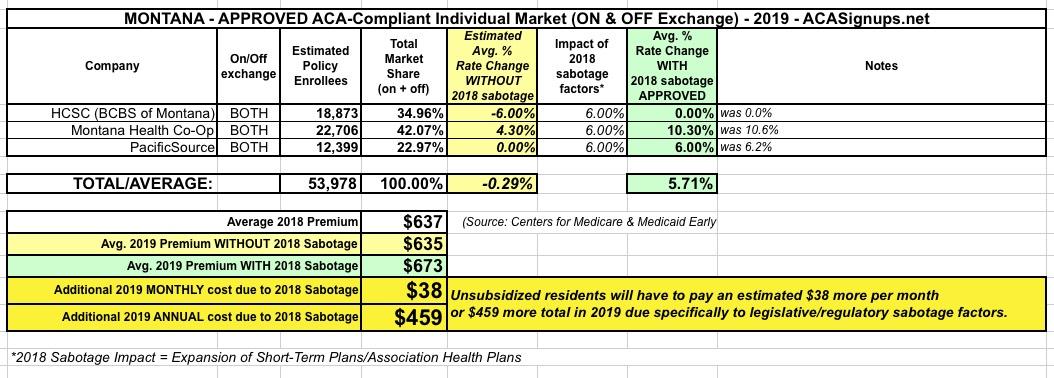 Montana: APPROVED 2019 #ACA rate hikes: 5.7% (vs. likely FLAT w/out #ACASabotage)