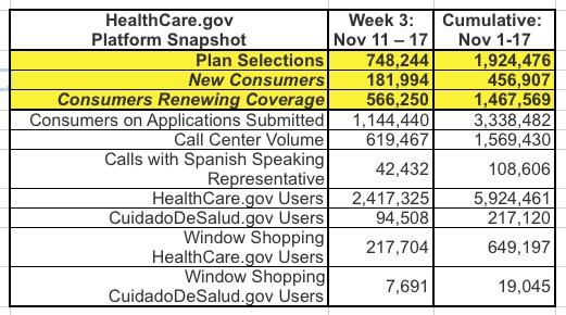 HC.gov releases Week 3 Open Enrollment Report: Still down 11% year over year