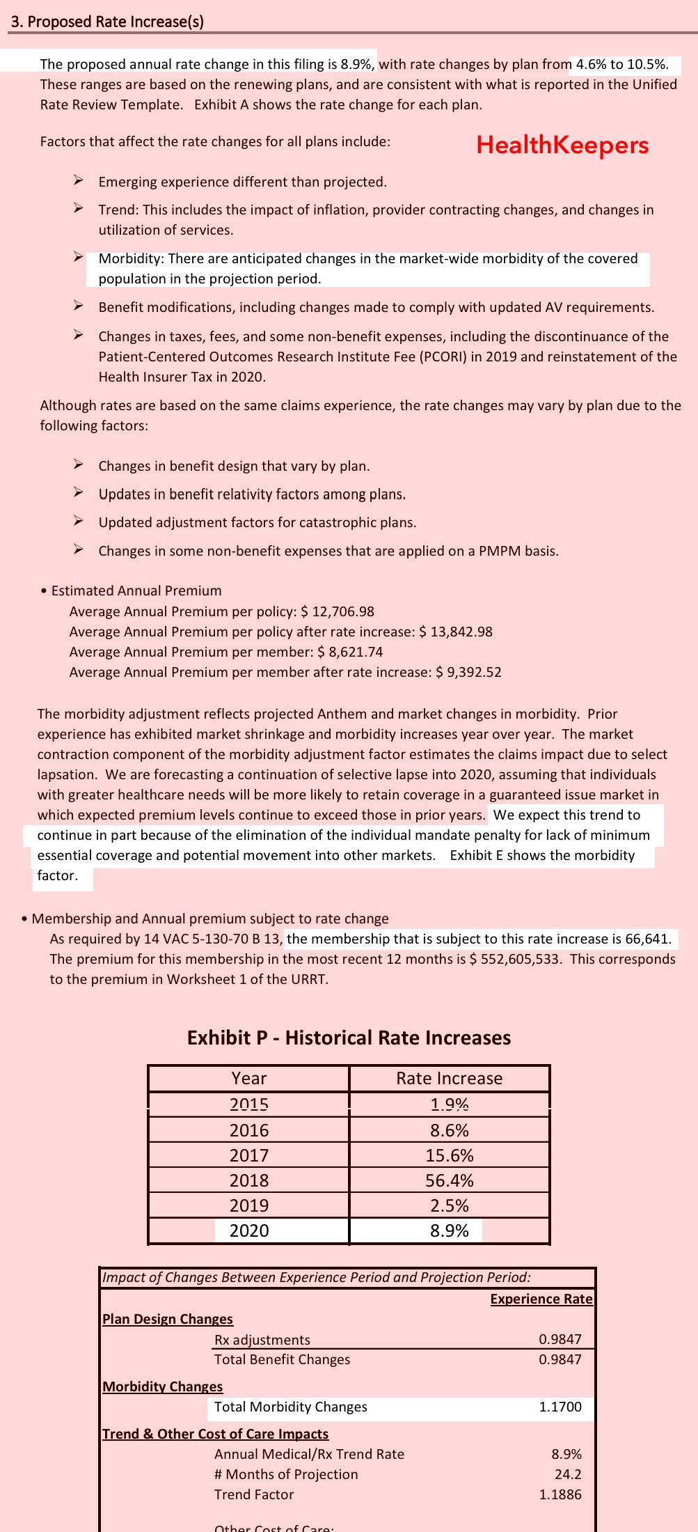 Virginia: PRELIMINARY 2020 ACA Exchange Avg. Premium Rate Changes: 2.9% increase