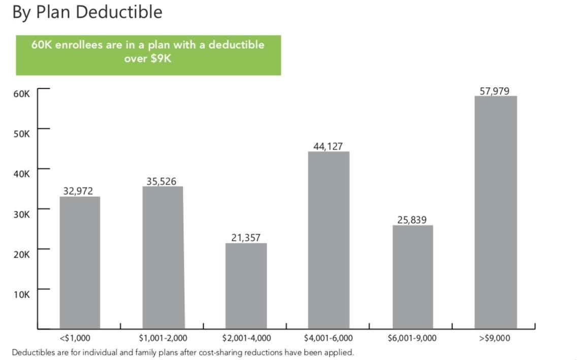 - Nearly 60,000 enrollees are in a plan with a deductibe over $9,000