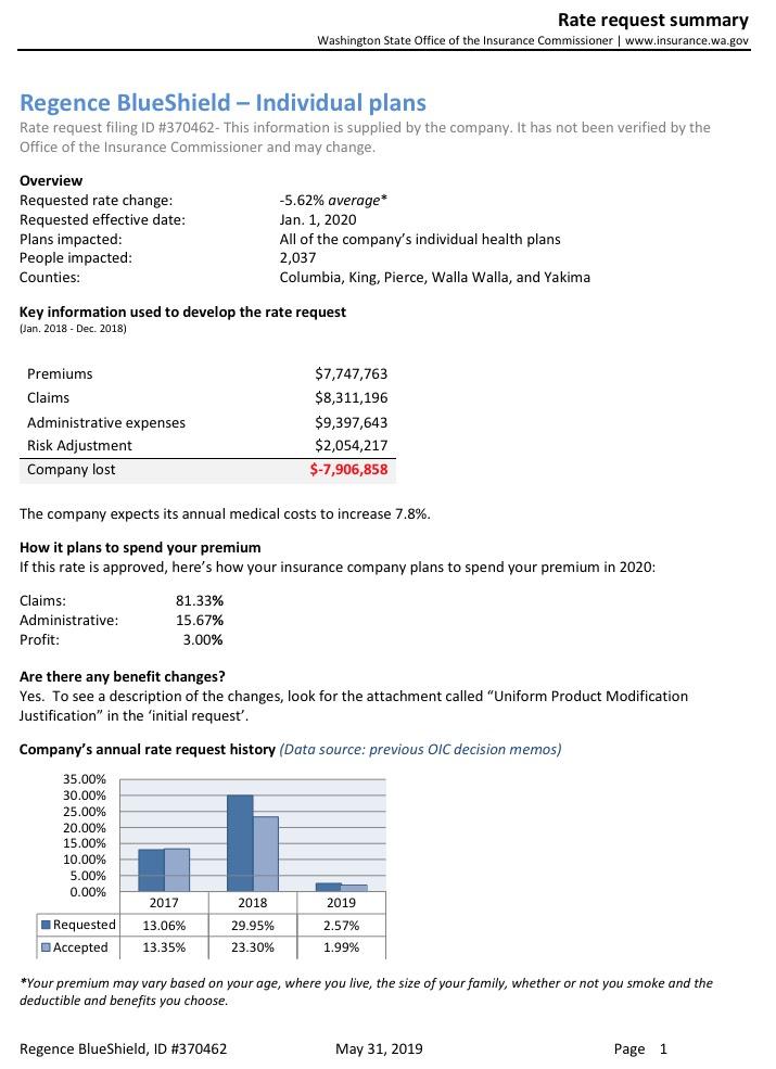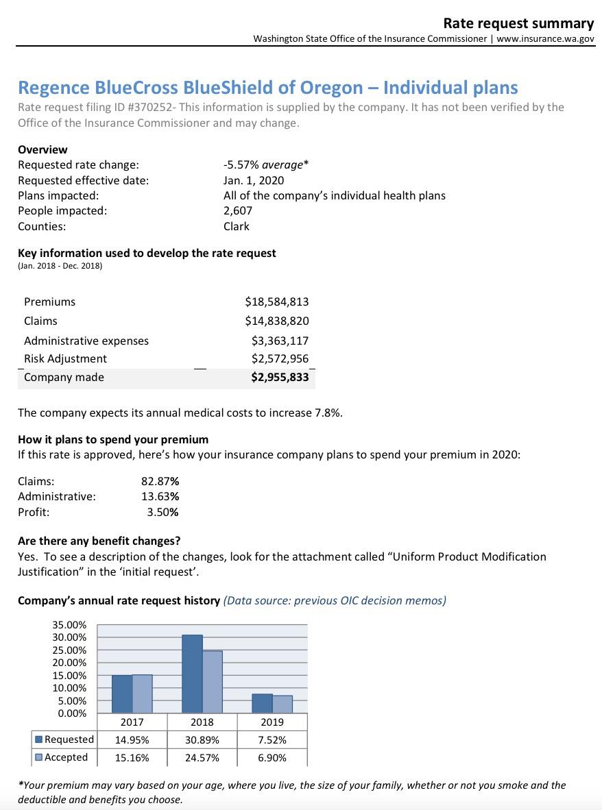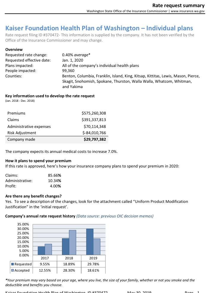 In any event, the nominal ~1% average rate increase (it ranges from a 7.3% reduction to a 10.2% increase by carrier) means unsubsidized Washingtonians will only be paying around $8/month more on average next year.