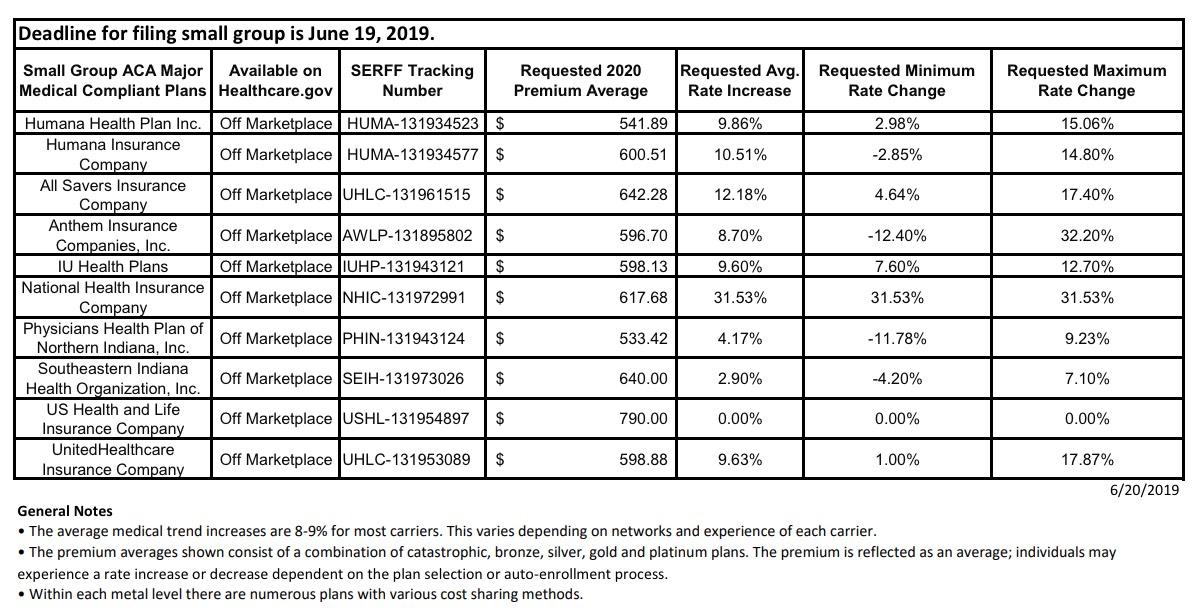 The overall average rate increase for 2020 Indiana individual marketplace plans is 9.0%. CareSource and Celtic (MHS/Ambetter) have filed to participate in the 2020 Indiana Individual Marketplace. The Department of Insurance anticipates that all 92 counties in Indiana will be covered by both CareSource and Celtic (MHS/Ambetter).