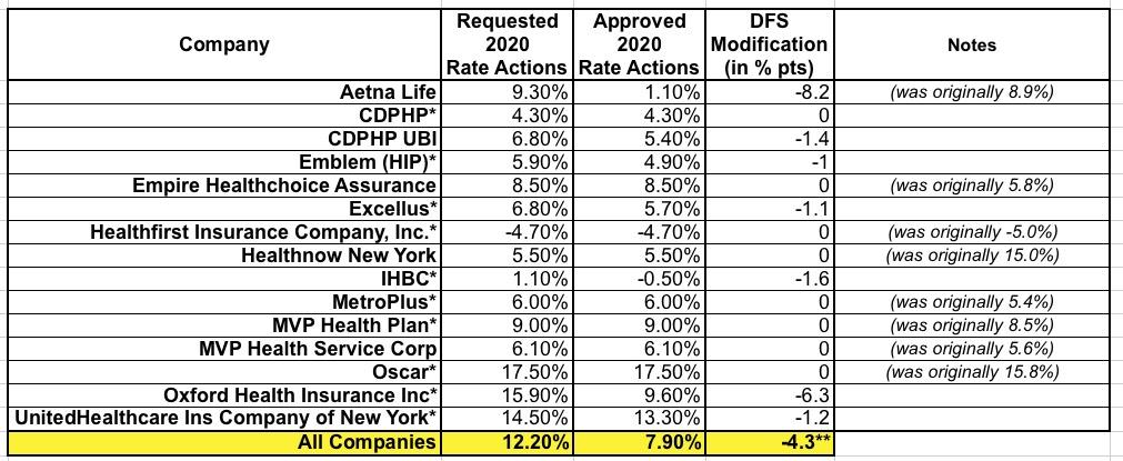 Yesterday, however, NY DFS became the third state (after Oregon and Virginia) to publicly release their approved 2020 premium changes...and like OR & VA, they've shaved a few points off the average rates:
