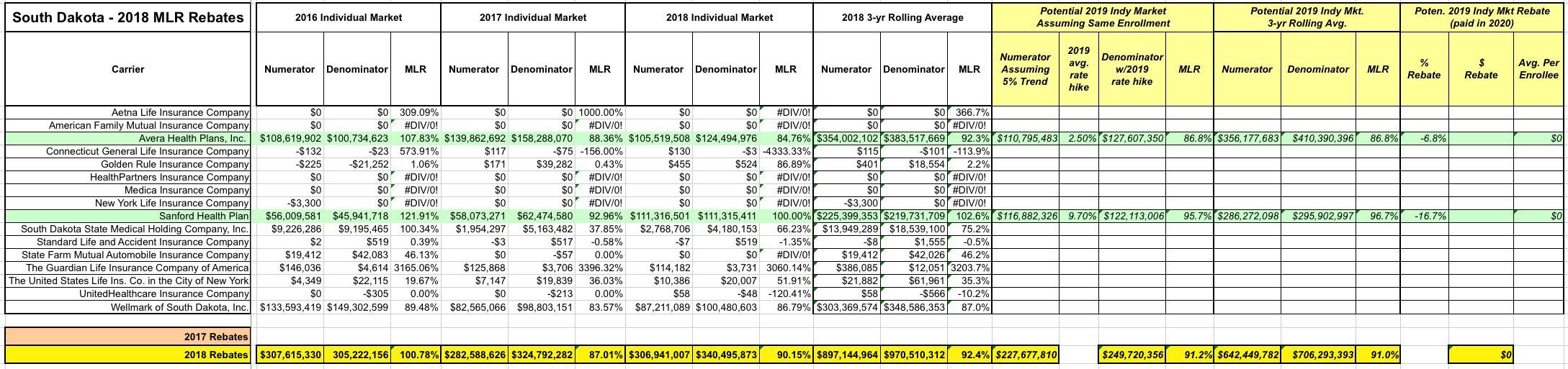 MLR rebate payments for 2018 are being sent out to enrollees even as I type this. The data for 2018 MLR rebates won't be officially posted for another month or so, but I've managed to acquire it early, and after a lot of number-crunching the data, I've recompiled it into an easy-to-read format.
