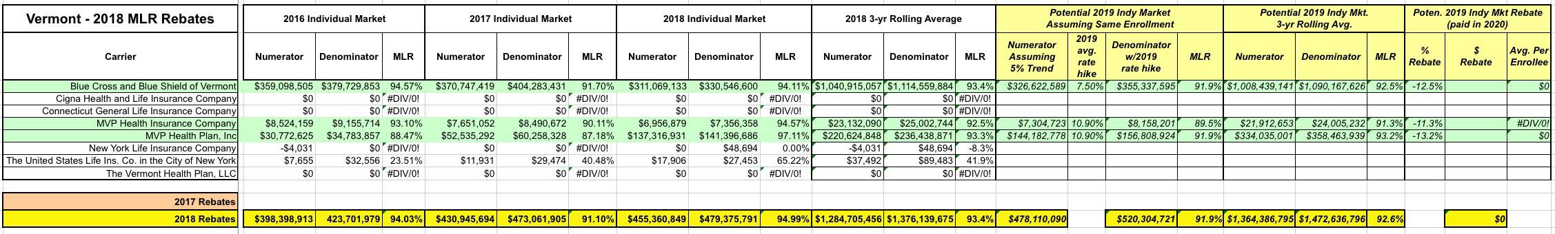 MLR rebate payments for 2018 are being sent out to enrollees even as I type this. The data for 2018 MLR rebates won't be officially posted for another month or so, but I've managed to acquire it early, and after a lot of number-crunching the data, I've recompiled it into an easy-to-read format.