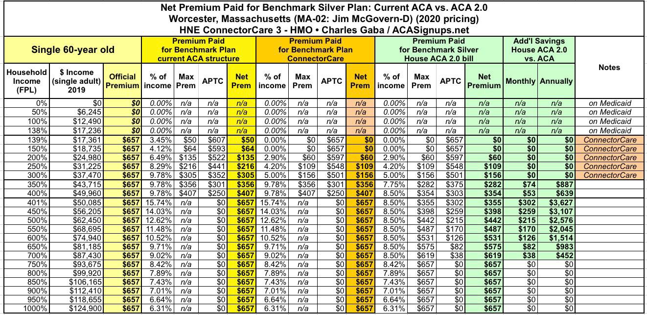 With all this in mind, here's the case studies, with extra columns added to account for MA's unique ConnectorCare arrangement: