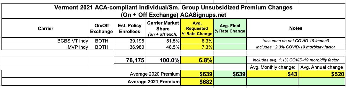 Vermont: Carriers request 6.8% avg. rate hikes for 2021; #COVID19 impact is a big ol' ¯\_(ツ)_/¯