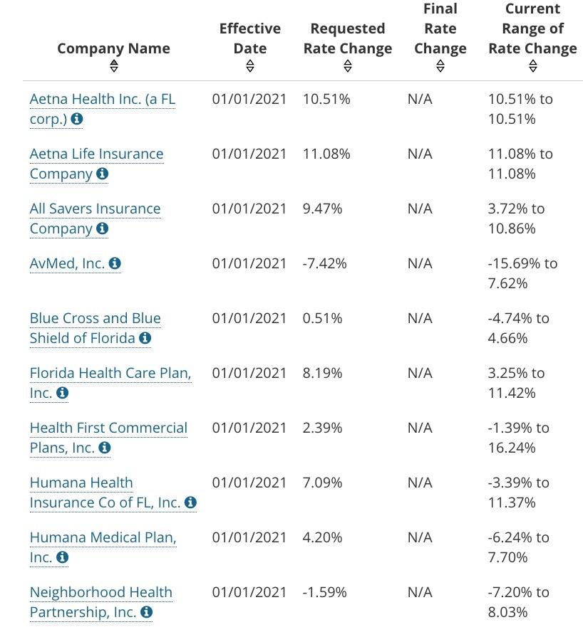 Florida: Preliminary avg. 2021 #ACA premiums: +1.8% individual market; +3.3% sm. group