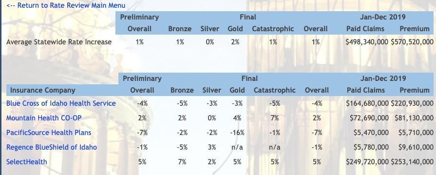 Hmmm...it looks like the Idaho Insurance Dept. has let pretty much every requested individual & small group market rate change be approved exactly as is: