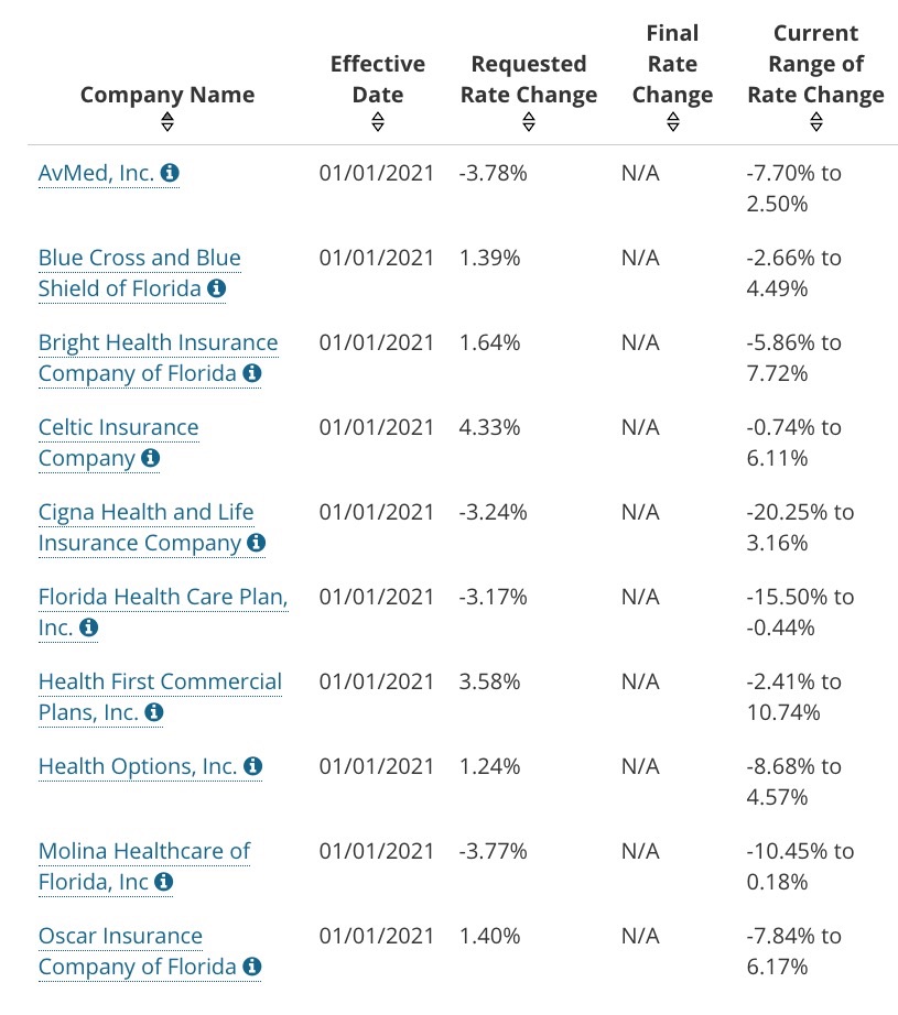 The Florida Office of Insurance Regulation (OIR) announced today that premiums for Florida individual major medical plans in compliance with the federal Patient Protection and Affordable Care Act (PPACA) have been approved for the 2020-2021 plan year. Following OIR’s rate filing review, the average statewide approved rate change on the Exchange is +3.1 percent, beginning January 1, 2021.