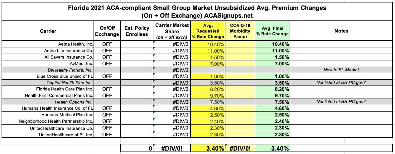 Florida: *Approved* avg. 2021 #ACA premiums: +3.1% individual market; +3.4% sm. group