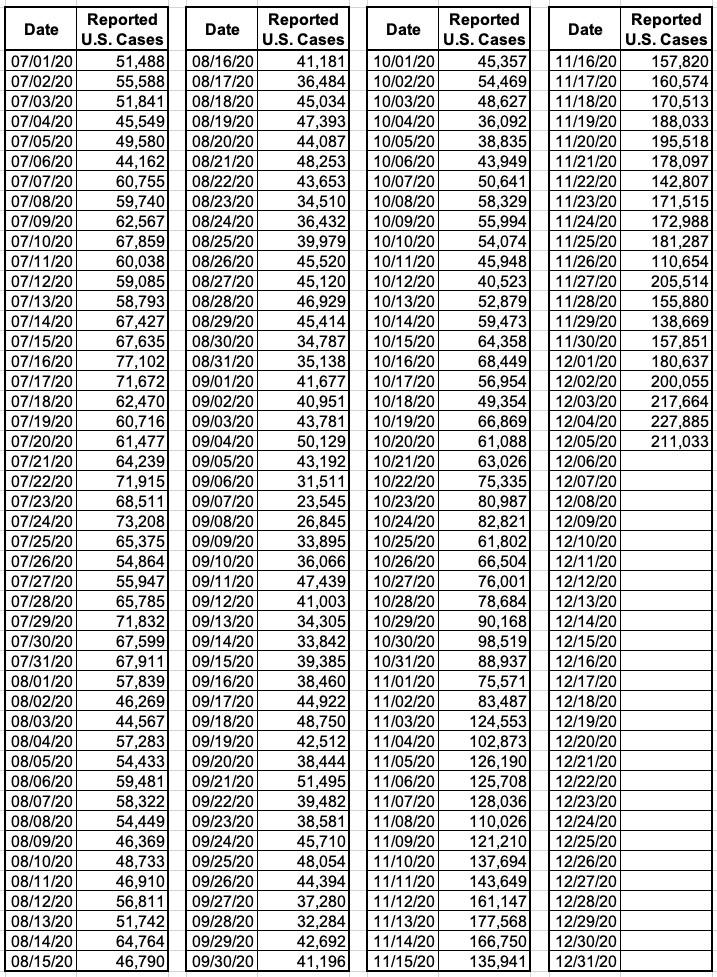 So, nationally, let's plug in the actual daily cases starting on, say, July 1st, according to Johns Hopkins University Center for Systems Science & Engineering: