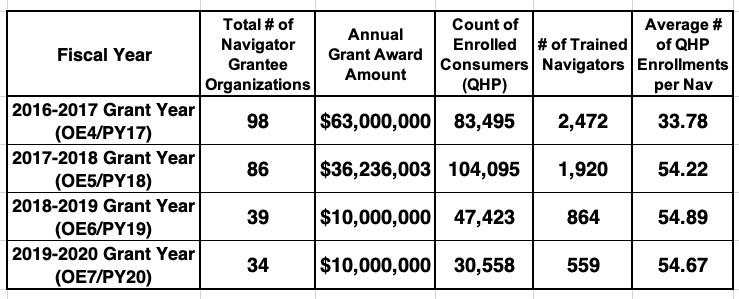 At the same time, however, the Trump Administration also decided to slash the ACA's Navigator program by 39% that year as well...and further yet the following year.