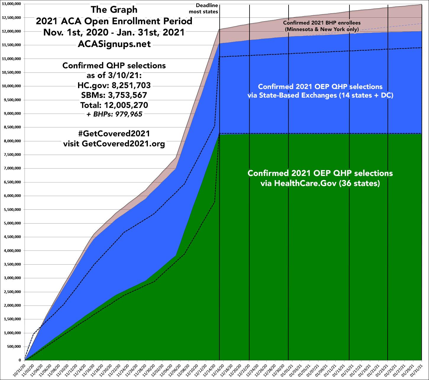 UPDATE 3/16/21: With Rhode Island added, the semi-official tally comes in at just over 12.0 million (12,005,270 QHP selections total). Again, it could drop slightly below that if my estimates for a handful of states are off, but it should be damned close to it.