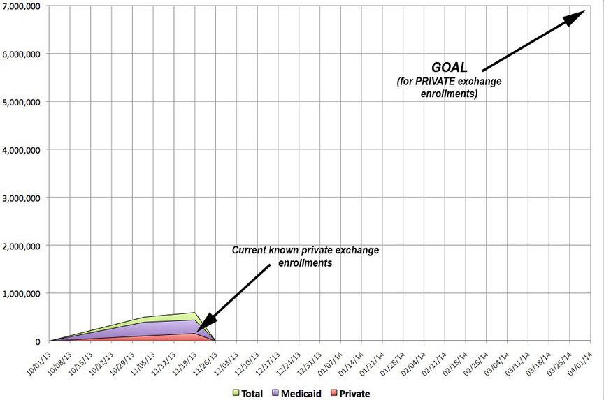 Oh, and just to keep things in perspective, here's the same chart scaled out to the actual stated 7 million enrollment goal by the end of the 3/31/14: