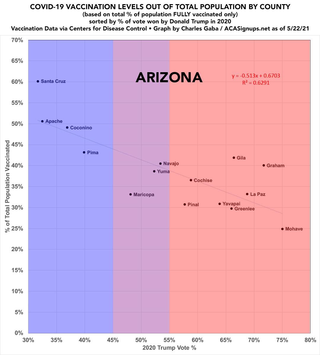 Arizona: #COVID19 vaccination rates by county & partisan lean