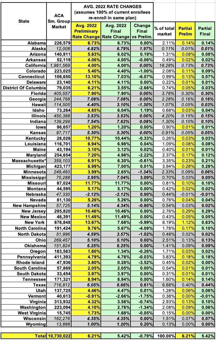 It's also worth noting that assuming the math above is fairly accurate, it looks like the national weighted average premium increases for 2022 in the small group market are around 5.4% vs. 2021 rates, a bit higher than the 3.5% weighted average on the individual market.