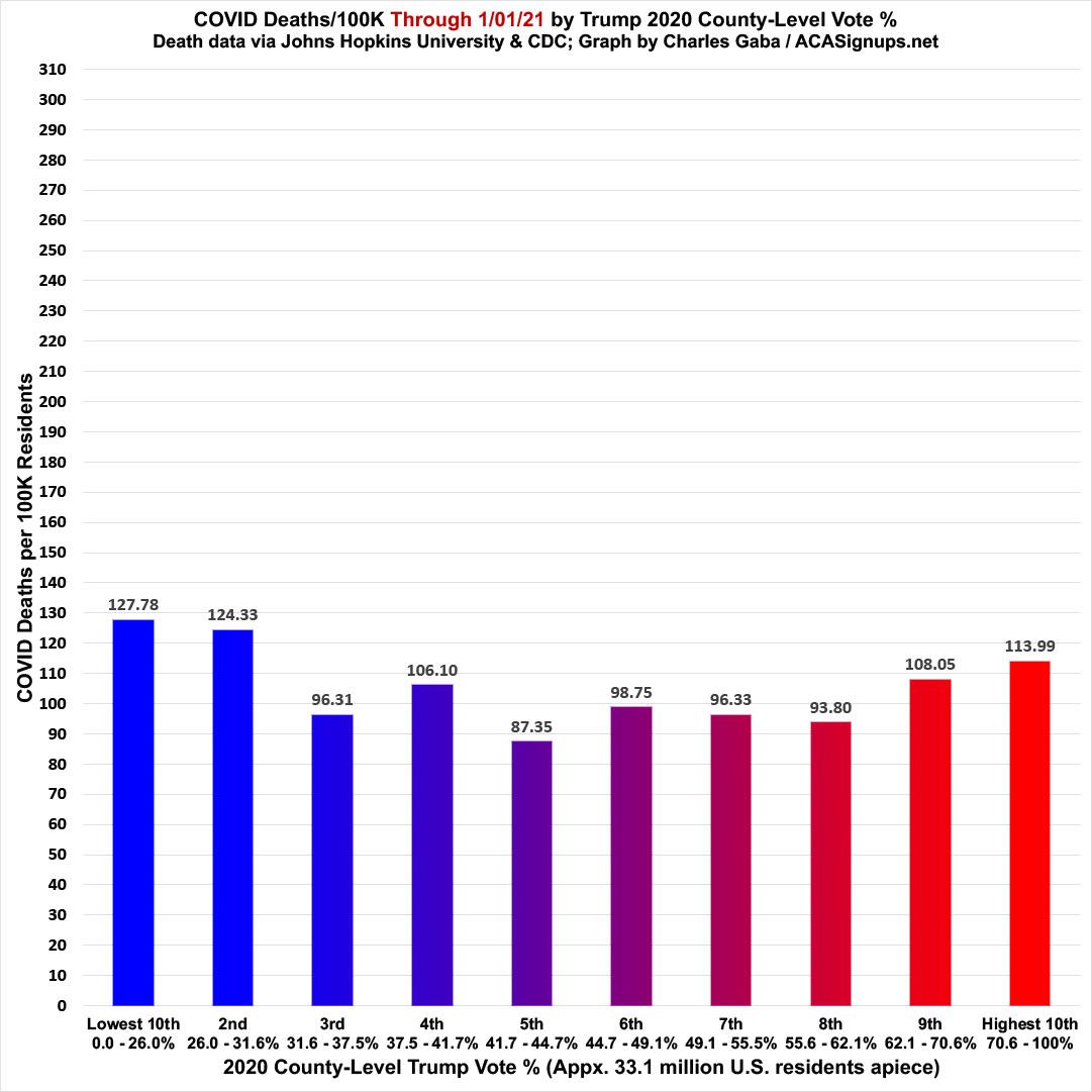 The COVID pandemic killed more Americans at a higher in Blue Counties than Red Counties right up until the moment Trump left office...after which it flipped to being more of a Red County crisis.