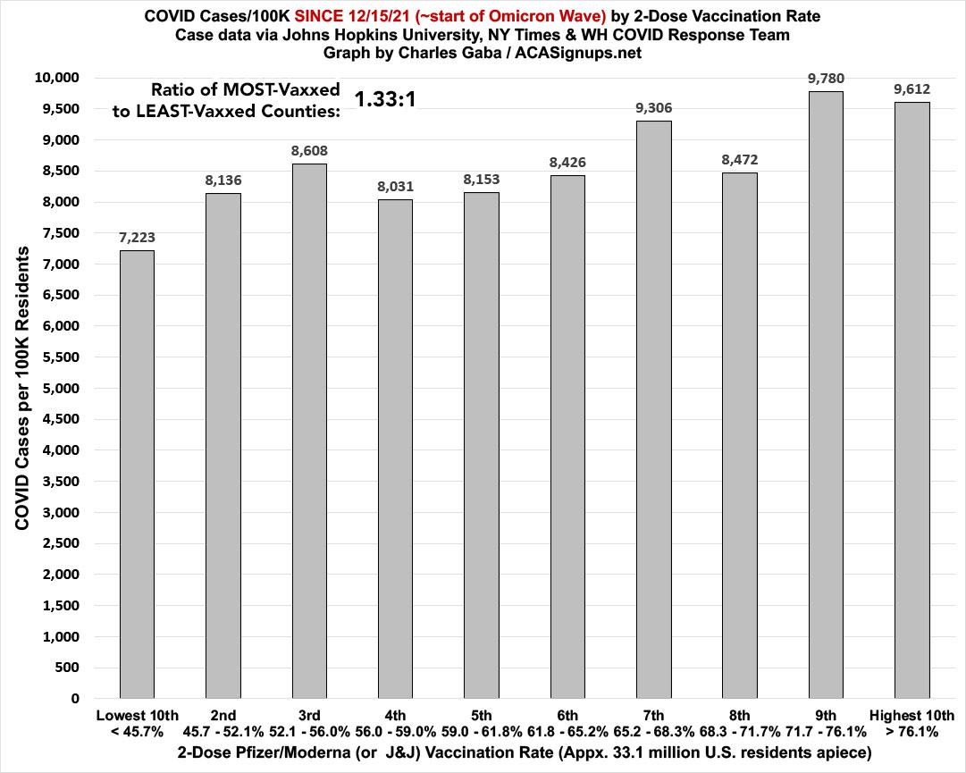• Delta wave CASE rates: 2.12 higher in the least-vaccinated decile than the most-vaccinated decile