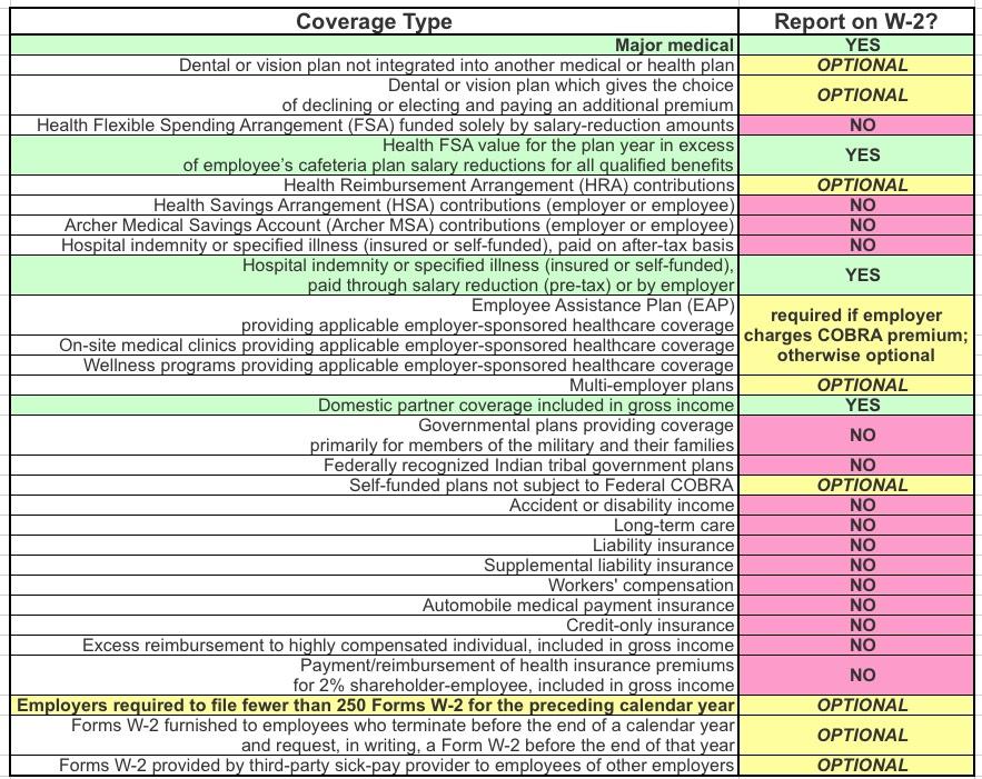 ...More information about the reporting, and which employers are, or are not, required to report this on the Form W-2 can be found on the Form W-2 Reporting of Employer-Sponsored Health Coverage page.